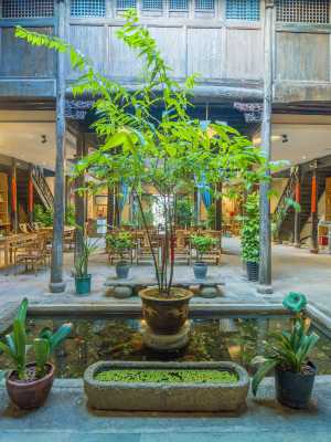 民宿位於諸葛八卦村景區內、上塘古商業街,其建築在百年前即為老字號“義生昌號”,為當地盛名商行,以價格公道、貨品豐富、誠信經商聞名。義生昌修舊如舊,保留了百年老字號的原有建築風格。一樓為全敞開式的古建築空間,2進的天井院落,邁入大門即撲面而來的穿越感。十八般兵器、詠春木人樁、武俠書畫等武術文化一一展示。二樓與副樓為不同風格的客房,自古武醫是一家,民宿客房由中華傳統中醫草藥命名,每個客房的門板雕花全都不同,每個客房的洗手枱盆全都不同。