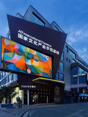 【酒店定位】酒店是一家藝術型高檔酒店,位於蘭州市城關區東部市場商圈創意文華產業園。