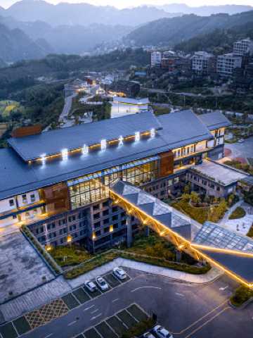 酒店位於西江苗寨地標觀景台沿馬路下行步行約3分鐘,馬路右手邊,俯對西江的中心-表演場,酒店依山而建,擁有無敵觀景位置和豪華的設備設施,夜幕慢慢降臨在酒店的任何區域往外望去,整個苗寨的村村寨寨被一盞盞橙黃色的燈勾勒,如夜裏星河。而任由您的靈魂在這裏放開所有在星河裏穿梭。