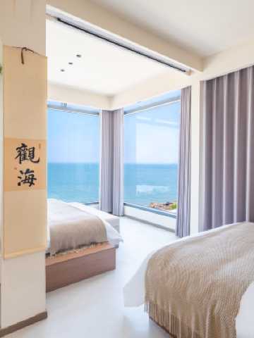 經過一個城,尋覓一間房,消去您滿身的疲勞!民宿位於4A級風景名勝區連島海濱度假區內,是您居家旅行、朋友出遊、公司團建的不二選擇!民宿擁有各類海景房、海景套房,室內寬敞明亮、簡約大氣,均帶有獨立的衞生間和海景陽台。民宿位於頂樓,每個房間都是全景大落地窗,觀海視野廣效果佳