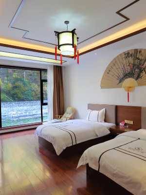 酒店客房以中式裝修為主,裝修風格突出,房內均設置地暖、液晶電視、獨立WIFI、多頻淋浴,獨立衞浴,一次性毛巾\浴巾,酒店有電梯,免費停車場。
