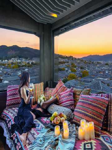民宿是精心打造的一所以觀景花園為主題的庭院。民宿位於麗江古城最繁華的獅子山半山腰間車可以到離客棧最近的古城入口僅需步行2分鐘,500平的大院子可觀整個麗江古城全景:臨古城繁華的四方街步行僅需3分鐘左右,靜卧山腰中;觀古城全景,撫高原晚霞,鬧靜結合,怡人養心。 民宿由專業設計師打造,結合酒店與客棧二者為一的獨特輕奢風格。房間都有超大窗戶,衞生間與洗浴間乾濕分離、高端衞浴、部分房間有超大浴缸;純木質手工傢俱、進口乳膠床墊、星級床上用品;每個房間都有獨立wifi覆蓋,液晶電視、空調、燒水壺、加濕器、吹風機均簡約輕奢系列。公區配有花園、觀景台、茶室、洗衣房、監控、門禁,安全便捷。每天提供免費水果、茶水及點心,一對一私人助理服務。 別院擁有超大的觀景走廊,靜坐觀景台,三五好友點上一杯咖啡相伴,整個麗江古城的全景盡收眼底。 花香瀰漫在空氣之中,在這裏看雲捲雲舒,雨後彩虹。 耳畔時不時傳來陣陣歌聲,伴你過度過一個浪漫的假期時光。