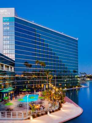 長灘凱悅酒店可俯瞰彩虹港、毗鄰會議中心,位置理想,只需步行即可抵達迷人海灘。 客人可輕鬆前往高檔精品店、 100 多家餐廳、名勝觀光地點,以及瑪麗皇后號、太平洋水族館、派克娛樂中心、卡塔利那島、迪斯尼樂園、諾氏百樂坊樂園、環球影城等主要景點。 只需很短車程即可抵達三家當地機場。寬敞的酒店大堂配有禮賓服務、商務中心及禮品店,恭候各方賓客的光臨。 酒店擁有 2,508 平方米的多功能空間,並配有現代化的會議和宴會設施,其中包括三間多功能宴會廳、行政董事會議室及大廳,是舉辦商務及社交活動的完美之選。 酒店還提供視聽服務、現場及酒店外宴會服務。酒店的528間客房均可欣賞水景。房內設施豪華、舒適便利。可享受無線上網、語言信箱、視頻帳戶瀏覽和退房服務。此外,設施齊全的健身中心、室外泳池和漩渦水療浴池、陽光露台以及鄰近的高爾夫球場,可令客人徹底放鬆身心,恢復活力。 就餐場所包括:Tides 餐廳,全天供應加州風味菜餚;Perks Coffee Pantry 供應糕點、三明治和美味咖啡;大堂酒吧供應雞尾酒和前菜。