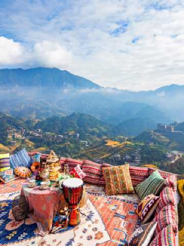 酒店得天獨厚地理位置,為許許多多慕名而來看日出觀梯田的客人提供了前所未有的體驗,只要您在清晨醒來時拉開窗簾,即便靜靜地躺在床上也能觀賞那一輪紅日衝出遠方的山脈劃破黎明的寂靜的無限風光。在每個陽光和煦的午後,伴着山間清爽的風,倚在“美人靠”望着梯田思考人生的過去是何等的愜意