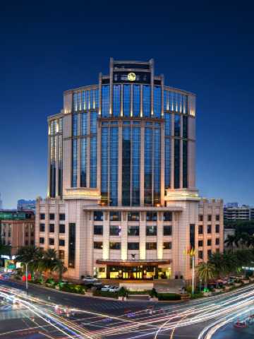 酒店位於茂名CBD中心區,地處城市主幹道西粵中路和雙山路的交匯處,是目前茂名地區較高的標誌性建築。酒店距離茂名火車站、高鐵站及客運站僅5公里,距離湛江機場100公里,距離正在建設中的粵西國際機場40公里,地理及區域位置極為優越。酒店佔地面積約9800㎡,建築面積3.5萬㎡,樓高42層150米,室內外停車位逾1000餘個,屋頂設有茂名地區直升機停機坪。酒店的建築風格是:現代港式,輕奢簡約,局部融入東方元素,結合地方文化特色,為賓客帶來新潮、時尚、尊貴的消費享受。酒店擁有各類客房260間/套,設有中餐廳、全日餐廳、設施齊全的多功能廳及會議廳,茂名地區一家超大超豪華無柱宴會廳,還擁有配套的健身中心、茶室棋牌室、室外露天游泳池等服務項目。