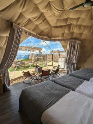 所有 10 棟別墅均為獨立的拖車式住宿,每間客房均設有私人露台和帶熱水的戶外浴池! 位於沖繩縣南城市,距那霸機場約 40 分鐘車程,可俯瞰清澈的大海和湛藍的天空。 這是一個被聖地環繞的神聖之地,在壯麗的大自然中盡情放鬆,恢復身心。