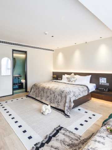 民宿在住宿體驗上致力於打造出民宿中的高標準體系,每間客房設施齊全,配備品牌傢俱,而且將民宿的窗簾、空調、燈具,投影儀等設施與智能聲控融合,讓賓客確確實實感受度假式的慵懶。