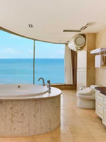 酒店位於黃金海岸一經路與四緯路交叉口;出門便是金色海灘,推窗觀海,移步達海,沐浴看海,卧床聽海。