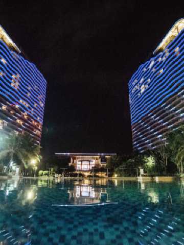 亞洲灣二期工程,酒店坐落於博鰲黃金海岸,酒店外觀採用波浪形態設計,與浩瀚大海遙相呼應,成為海南島東海岸一道亮麗的風景建築。酒店配套設施齊全,擁有海洋主題豪華客房、極具藝術氣息的1400平米的多功能圓形無柱會議中心、高端定製餐飲以及動感十足的健身中心等,傾力打造濱海旅遊度假“頭等艙”。