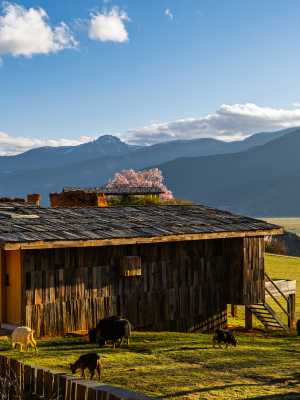 於納帕海景區之畔,隱匿着一方淨土。此地仿若塵世桃源,每日清晨,清脆鳥鳴婉轉,馥郁花香縈繞,將您温柔喚醒。莊園地理位置得天獨厚,可盡覽納帕海全域海景,波光瀲灩的湖面與澄澈天空相互映襯,美景令人沉醉。身後,神聖的藏族神山威嚴矗立,默默庇佑這片土地,為莊園增添了幾分莊嚴肅穆與神祕色彩。步入莊園,仿若踏入充滿異域風情的奇妙天地。這裏的房間均為獨棟小木屋,每一間都獨具匠心,設施完備,為賓客打造舒適便捷的居住體驗。木屋錯落於散發着原始草原風貌的舊建築之間,這些舊建築飽經歲月洗禮,承載着厚重的歷史變遷。每一塊磚石、每一處紋理,都似在低聲訴說往昔的故事,讓每一位到訪的客人都能深切感受到濃郁的當地特色。獨棟小木屋既保證了您的私密空間,又讓您仿若與自然融為一體,盡情享受來自香格里拉的獨特魅力。