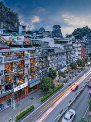 酒店位於陽朔西街口斜對面,走路到西街約1分鐘,地理位置優越,交通便利,是鬧鐘取景的理想位置。