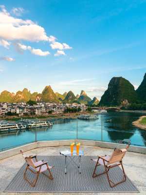 酒店位於灕江畔,依水而建,距離西街步行4分鐘,去往遇龍河、十里畫廊、宋城千古情、二十元人民幣、竹筏都非常方便。酒店附近可停車,配套有會議室、咖啡廳、西餐廳、小酒吧、觀景泳池,網紅觀景露台盡攬桂林山水甲天下的水墨陽朔最美日出觀賞角度,碼頭竹筏齊放,漁家燈火闌珊,網紅拍照場景刷爆朋友圈,記錄在桂林的美好時光。