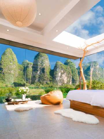在這裏,遇龍河兩岸奇峯突兀,同門山近在咫尺,於毛毛細雨中乘竹筏漂流在煙雨濛濛的遇龍河上,金秋十月踩單車穿梭在連綿不斷的麥田中,還有夕陽西下村落飄來的陣陣炊煙,酒店喜歡這樣接地氣的田園生活,也希望把這種生活方式向入住在此的客人們推薦,這就是酒店的初衷和理想。