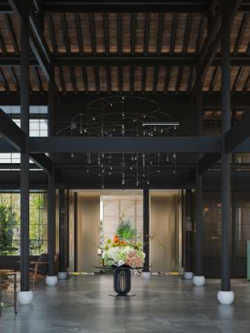 酒店位於紹興柯巖旅遊度假區,坐擁柯巖,離古鑑湖一步之遙。酒店延續了中國建築史上獨有的台門風格,將台門建築以全新的反轉烏牆的模式呈現在公眾眼前。