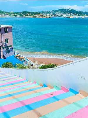 一邊懸崖絕壁,一面波光粼粼蔚藍色的大海。