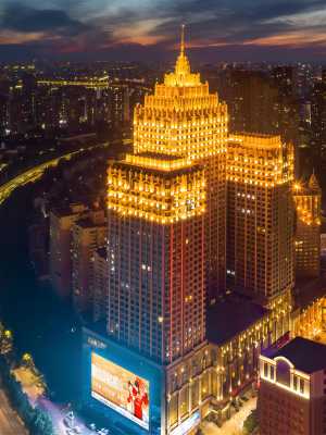 酒店擁有令人震撼的5000平方米入戶大堂、近2100平方米的空中花園、國際先進的高速電梯以及可容納800餘台車輛停泊的全自動立體停車庫。酒店前台設在十樓。