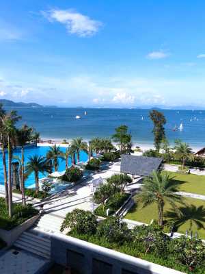 酒店設有多間客房及6棟豪華海景三房獨棟別墅,客房面積43㎡起,均設寬敞陽台,可欣賞山海美景;4間獨具風味的餐廳與酒吧,可訂製私密目的地用餐,探索多風味的用餐體驗;室外無邊際泳池、室內常温泳池、海上運動中心、超1200㎡的奇妙世界兒童樂園、設備齊全的健身中心是休閒度假及親子旅遊理想目的地;總面積超過2000㎡的會議與宴會空間,含880㎡的無柱式海景大宴會廳及9個不同規格的多功能廳,可量身定製浪漫婚典或會務活動。