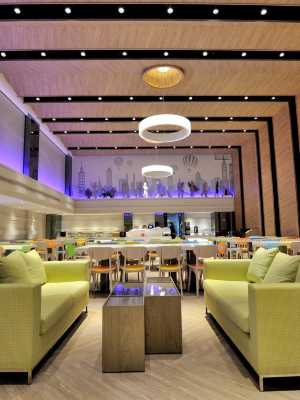 挑高6米的餐廳有着舒適用餐環境,讓空間緊密且有穿透的虛與實的結合在一起。而散佈在各角落的手工熱氣球及走廊上會發光的摩天輪,承載的則是滿滿的童真與夢想,帶着這樣的療愈的設計創意,飛揚環繞在旅客們的身邊。