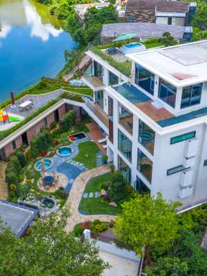 台山瀾悅·湖畔院子,作為集休閒度假與高端體驗於一體的綜合性別墅,瀾悅湖畔院子以“15房15泡池”的配置為基礎,融合私享富硒温泉與多元化娛樂設施,台山瀾悅湖畔院子度假別墅是您的優質之選!這裏集每間房私人泡池、富硒温泉、超大園林庭院景觀、室內高爾夫、星空恒温泳池、全屋智能於一體,配備15個私人泡池和花園專屬3個露天泡池,娛樂設施齊全,滿足休閒度假、朋友聚會、公司團建、商務接待等多元需求,讓您享受專屬放鬆時光。 作為一處融合自然景觀與高端設施的度假居所,頤和瀾悅湖畔院子度假別墅,以其豪華的設計、完善的配套及舒適的環境,成為家庭休閒、朋友聚會、公司團建或商務洽談的理想選擇。別墅外觀設計現代且時尚,無論是夜晚燈光映照下的高雅氛圍,還是白天陽光中通透明亮的質感,都展現出高端度假居所的獨特魅力。建築主體以白色為主色調,搭配大面積落地窗玻璃,既保證了室內的採光,又讓建築外觀顯得通透明亮。從不同視角看,別墅或在深藍色夜空下寧靜優雅,或在湛藍天空中清新明亮,周圍庭院設計更是精心考量:石板小徑蜿蜒穿過綠植與景觀石,裝飾燈與修剪整齊的樹木、草坪共同營造出自然與人工交融的美感。