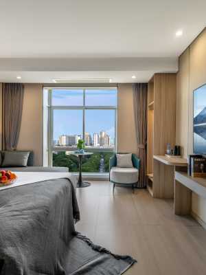酒店擁有各類風格客房百餘間,其中大床房及部分套房擁有戶外觀景陽台,所有房間均配備高檔品牌乳膠床墊、自動窗簾、智能控制系統、智能馬桶等,另有配套西餐廳及會議室2間。