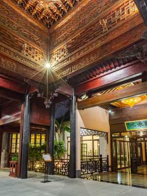 客棧是典型的二層江南明清建築羣落,外部環境綠樹葱蘢,裝修風格精緻高雅。