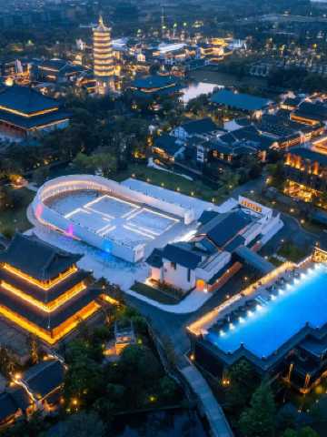 在建築裝修上,酒店傳統與現代風格並存,客房配備獨立禪茶室,陽台面臨古鎮街景或酒店中心戶外花園,推窗即是江南景,可領略濃郁的庭院園林風韻,景觀與舒適共存。