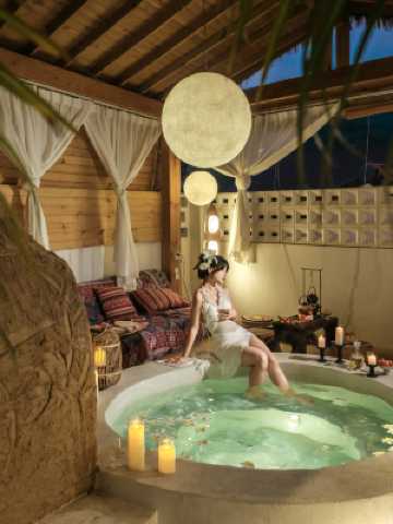 在喧囂塵世之外,隱匿於翠綠環抱的安吉,有一處令人心曠神怡的避世桃源,這裏不僅是旅人的棲息地,更是藝術與自然完美融合的夢幻空間。踏入這裏,首先映入眼簾的是連綿起伏的樹林,層林盡染,四季更迭間展現着不同的風情。清晨,薄霧繚繞山間,彷彿步入仙境;傍晚,夕陽如血,灑滿林間,每一口呼吸都是自然的饋贈。在這裏,您可以遠離塵囂,讓心靈得到最純粹的洗滌與放鬆。除了自然風光的享受,美宿還貼心打造了室內保齡球館,為賓客提供別樣的休閒娛樂選擇。無論是家庭出遊還是朋友聚會,一場酣暢淋漓的保齡球比賽,都能讓您在歡聲笑語中增進情感,釋放壓力。最為引人注目的莫過於那方梵高星空泳池。夜幕降臨,泳池四周的燈光緩緩亮起,模擬出梵高《星空》中那令人着迷的深藍與璀璨星光,彷彿置身於大師的畫作之中。在星光泳池中暢遊,不僅是對身體的放鬆,更是心靈的一場浪漫旅行。房間內特設的懸浮浴缸,更是將奢華與浪漫融為一體。輕輕步入這透明的水中,窗外是翠綠的山景或是滿天的繁星,讓您在泡澡的同時,也能享受視覺與心靈的雙重盛宴。房間設計巧妙,採用超大落地窗,將室外美景無遮擋地引入室內。無論是晨光初照還是夕陽西下,您都能坐在窗邊,品一杯香茗,靜觀四季變換,感受時間的緩緩流淌。 考慮到不同賓客的需求,塘子谷配備了現代化電梯,讓每一位賓客都能輕鬆抵達心儀的樓層,享受無憂的入住體驗。同時也特別為小朋友設計的戶外滑滑梯,不僅色彩鮮豔、安全有趣,更成為親子互動的場所。在這裏,孩子們可以盡情玩耍,家長們也能在陪伴中享受温馨的家庭時光,這裏,一個集自然美景、藝術氛圍、休閒娛樂於一體的度假勝地,等待着每一位熱愛生活、追求品質的您前來探索與體驗!