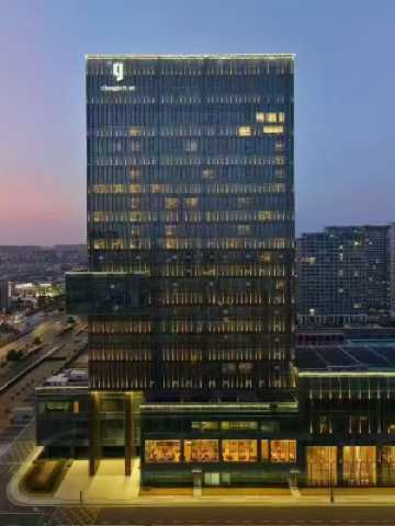 酒店總建築面積約9萬平米,建築高度達120米、地下1層,地上24層、外觀採用全玻璃幕牆幹掛,生動且簡約奢華。景觀由頂級設計師執筆,融合興化水鄉特性,打造興化城南門戶形象,是蘇中地區(泰州)首屈一指的國際豪華五星級酒店。