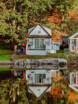 Lakefront; view of ski mountain, firepit, dock, kayaks, laundry, outdoor shower(Lakefront; view of ski mountain, firepit, dock, kayaks, laundry, outdoor shower)
