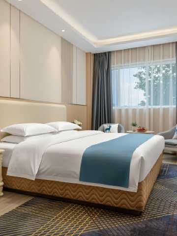 客房設施完全是超星級的配置,採用了美國舒達的華爾道夫床墊,配上高端的床品使客人既有包裹感又服帖,讓身體的每一寸肌膚得到支撐,消除了一天的旅途勞頓,兩人同時都能得到很好的休息。客房內的龍頭採用的是德國的高儀,充滿了質感和設計感,衞浴也是採德國高端的貝朗品牌。