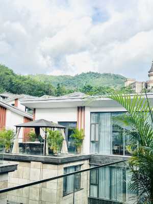 酒店佔地1000多畝,客房全部為套房,每套面積均在70平米以上,有自帶泳池別墅在內的各式套房,另外2箇中式餐廳、啤酒廣場、200平米無柱會議室、公共遊泳池等配套齊備,沉香山、天鵝湖交相輝映。