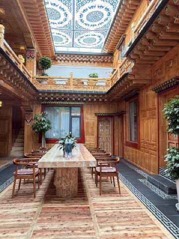 這是一家集住宿、餐飲、養生、商務、休閒為一體的藏式養生客棧,設有各類舒適客房,環境優雅、設施齊全。店內同時設有藏、中餐廳,豪華包廂、免費停車場等設施一應俱全,是您商務出差、旅行下榻的温馨驛站。
