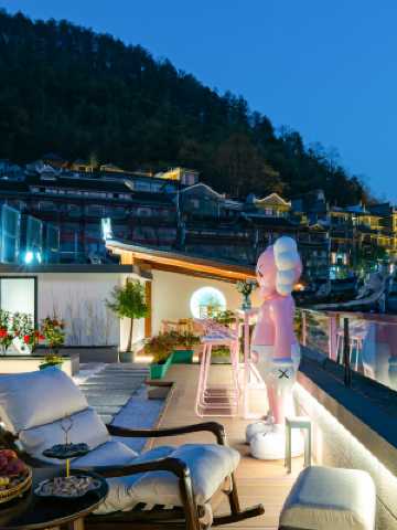 民宿坐落於美麗的鳳凰古城,位於沱江河畔上游風雨橋附近,離古城核心景區約步行5分鐘,離古城客運汽車站約步行10分鐘,距離鳳凰古城磁懸鳳凰之眼站,步行1分鐘即可到達。高鐵可安排免費接站,自駕可直接開至店門口,免費停車,交通便利,周邊各類餐飲、娛樂生活設施齊全,整體原木系的設計,温馨暖色系,內設專門的茶歇休閒區,有電梯。房間設施智能化,智能窗簾、智能馬桶、投影幕布等,江景房,推開窗或者坐在陽台上,一覽沱江美景,幽靜而美麗,可自助洗衣、健身房、兒童樂園,我們一直堅守以人為本,顧客至上的服務理念,配備管家式服務,行程規劃、介紹地域特色,贈送古城手繪地圖,衞生標準嚴格,擇一間,品茶靜坐隱於塵世,我們在鳳凰古城等您。