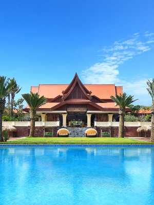 南傳佛教主題區域-佛塔區及被葱鬱的熱帶叢林環繞的戶外游泳池、兒童樂園、健身房等一應俱全的設施,為休閒度假的你營造一個舒適、精緻、尊貴的雨林度假天堂。