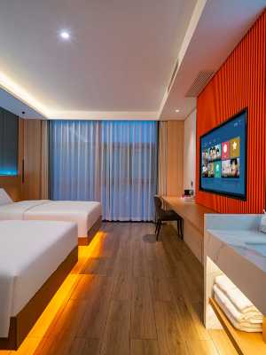 所有房型均採用夢百合【零壓床墊】 訂房後無需在前台登記【刷臉秒入】 本店承諾2秒內出熱水 【秒出熱水】 住店期間停車一律免費【免費停車】 自助區提供自助洗衣房【免費洗衣】 本店內所有區域內覆蓋【極速WIFI】 本酒店所有房型已實現【全屋智能】