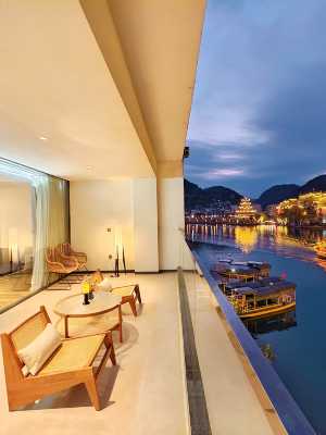 酒店坐落於舞陽河畔,所有客房均可欣賞到一線河景。古城核心景點青龍洞、祝聖橋、石屏山僅幾步之遙,在客房陽台即可觀賞到如畫卷般的山水風光。擁有寬敞的公共區域,高空觀景花園露台,咖啡吧,極具設計感的裝修,設施齊全,電梯、中央空調、智能客控、迷你冰箱、馬歇爾音箱、智能馬桶等應有盡有......滿足您對高品質住宿的需求。