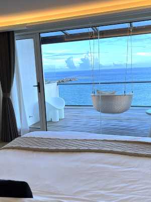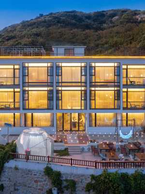 本店位於素有“海上布達拉宮”美稱的東極青浜島,以安靜為主調,房間配置智能馬桶,電動窗簾、除濕機、乾濕分離浴室等。躺在房間就能欣賞日落,大海。