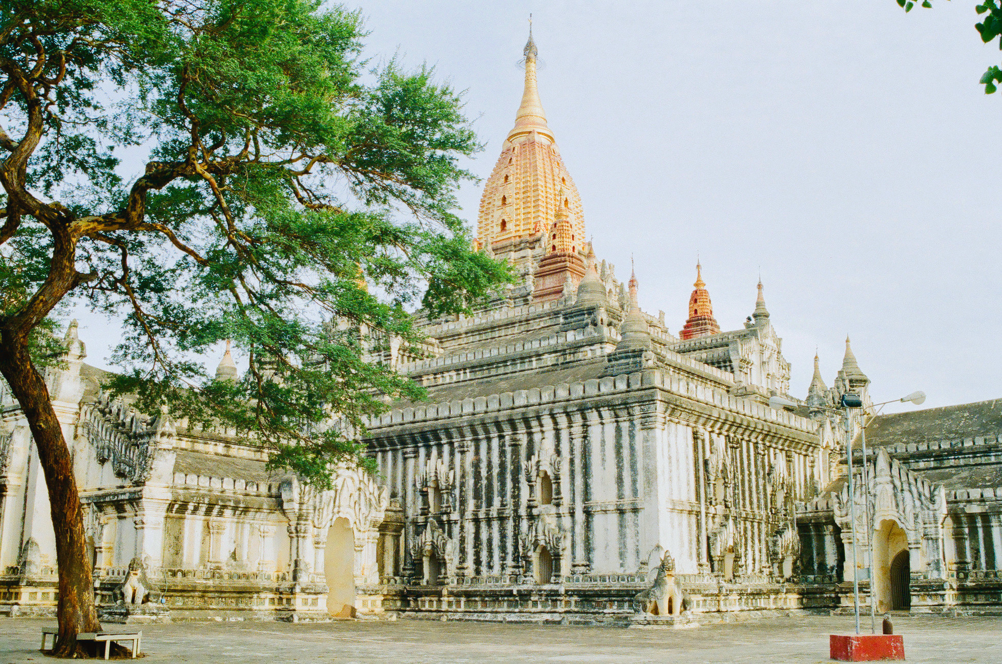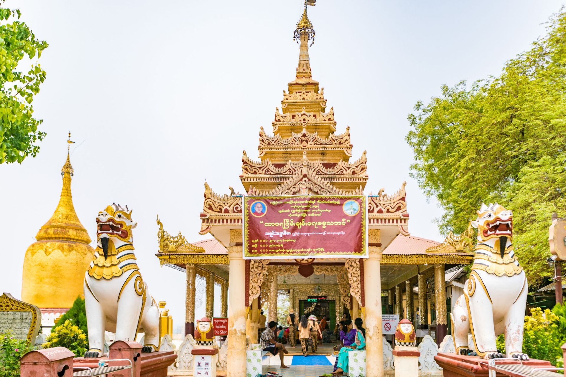 <p>瑞喜宮塔位於良烏鎮以西、伊洛瓦底江南岸,竣工於公元1102年,是蒲甘最古老的寺廟,也是蒲甘唯一用石頭堆砌的建築。它開創了緬甸佛塔造型的經典風格,<a href="https://you.ctrip.com/sight/rangoon488/55622.html">仰光大金塔</a>就是以此為原型的。</p> <p>瑞喜宮塔內珍藏著佛祖的一顆佛牙和一些佛骨,在此朝拜的當地人有很多。</p> <p>來到寺前,需脫鞋走進一條百米的長廊入內。長廊兩側聚集著許多小商販,兜售一些工藝品,時不時還能碰到幾位身著紅袍的小和尚。走到長廊盡頭,兩邊的牆上寫有捐款者的姓名和捐款金額。</p> <p>出了長廊你便能看到金光閃閃的瑞喜宮塔,就像一座縮小版的仰光大金塔。塔邊上有許多鴿子,一片祥和之氣。每天早上都有很多佛教徒到此祈禱,虔誠膜拜的面容讓人印象深刻。</p> <p>佛塔的主體施以紅漆,外面貼著一層金箔,四周的法器和雕塑則是鍍金的。瑞喜宮塔被53尊雕塑圍繞著,包括獅子、摩迦羅(一種形似鱷魚的動物)和蟾蜍等造型。佛塔的底座由三層平台構成,其踏腳板是雕刻傳統戲劇場面的綠色木板,不過現在並不開放登塔。據說買張金箔貼在塔下的浮雕上會帶來庇佑哦。</p> <p>佛塔外圍的配殿有著統一的紅漆柱子,頂部裝飾著鎏金寶塔。位於塔寺東南邊的一間小佛堂裡則供奉著37位蒲甘王國的守護神。整座寺廟在午後的陽光下顯得格外熠熠生輝。</p> <p>在佛塔前的地面上還有一處小水池,你可以看到水面中佛塔頂尖華蓋的倒影,很有意思。此外,寺廟後院的一座偏殿有著漂亮的拼花瓷磚地板,是乘涼休息的好地方。</p> <p>日落之後,佛塔會亮起燈光,星空下耀眼的瑞喜宮塔顯得別有一番風味。</p>