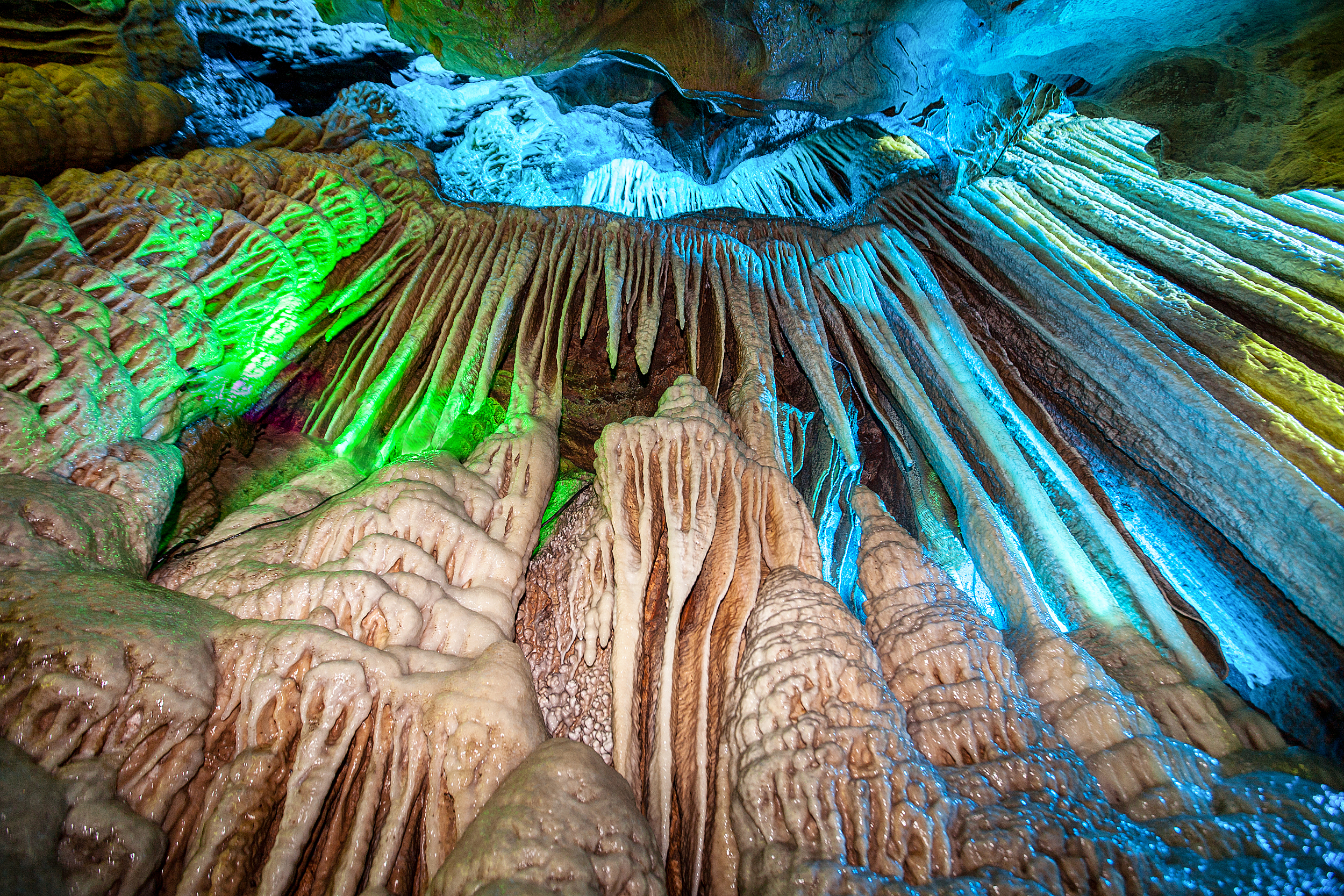 雪玉洞是龍河旅遊景區溶洞群的精品。洞內鐘乳石都潔白如雪、質樸似玉,是世界罕見的潔白如雪的溶洞“冰雪世界”,故名雪玉洞。洞內沉積物生成的景觀,種類齊全、規模宏大、分佈密集、形態精美、令人難以置信。洞中的水也特別清澈純淨,洞內空氣中二氧化碳含量很高。雪玉洞分為群英薈萃、天上人間、步步登高、北國風光、瓊樓玉宇、前程似錦六大遊覽區,雪白的鐘乳石和塔珊瑚群是很好的看點。