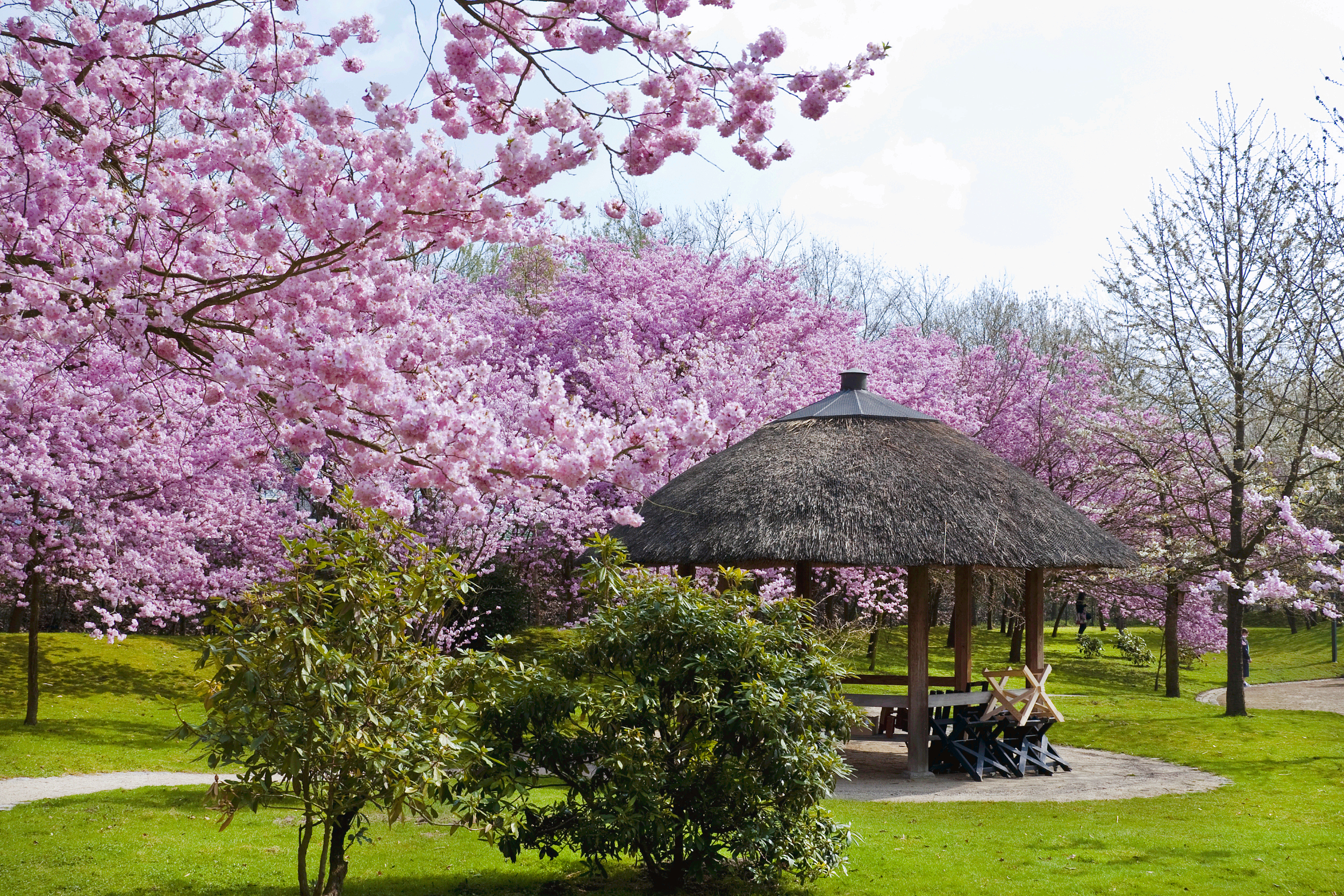 之所以叫日本花園,是因為它是日本人建造的。公園環境很好,春季可以看到不少花種,公園每年從4/1日開始開放。週末從下午2點開始6點,具體可以在Hasselt市的網站www.hasselt.be上查詢。