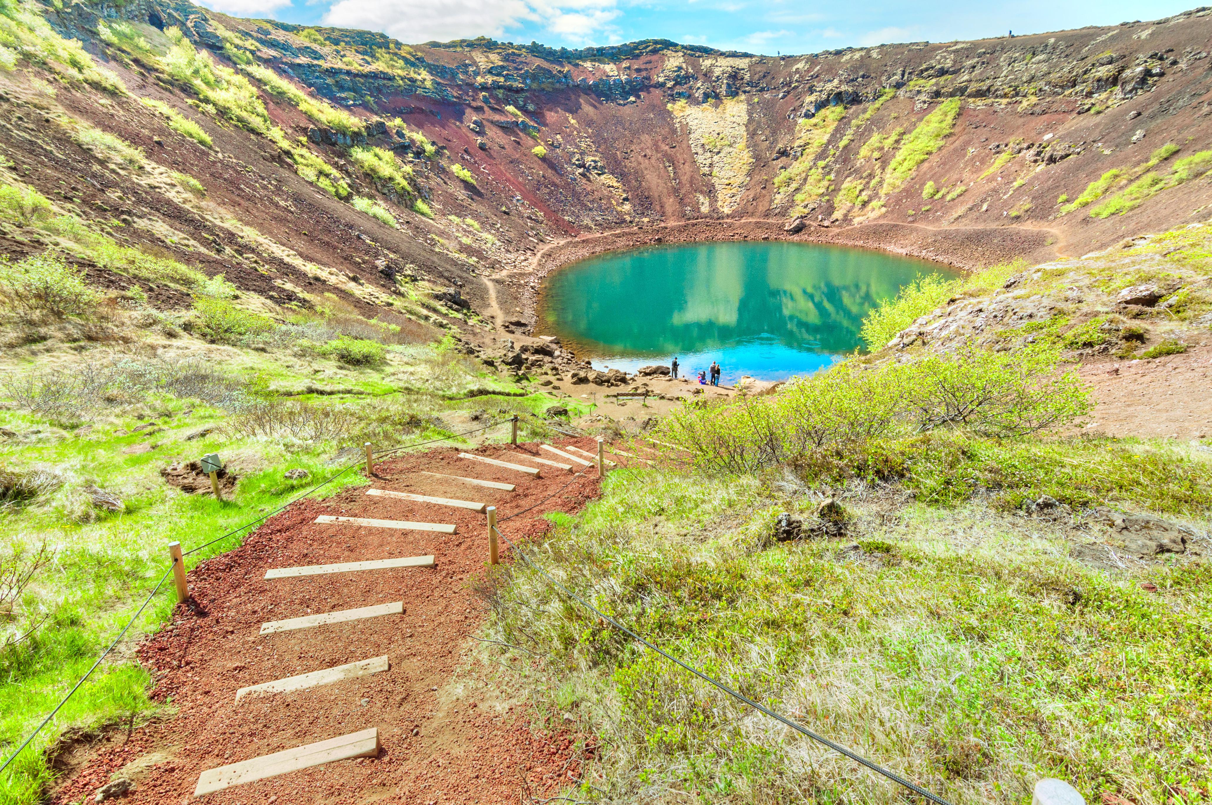 <p>Keri&eth;火山口湖形成於6500年前的一次火山爆發,後經雨水積累而形成這個深度約55米、直徑為170米至270米的橢圓形火山口湖。</p> <p>由於吸收了周圍土壤的礦物質,湖水呈鬼魅般的幽綠色,為世界上最著名的三個火山口湖之一。在湖周圍修建了步行道供遊客環湖遊覽。</p>