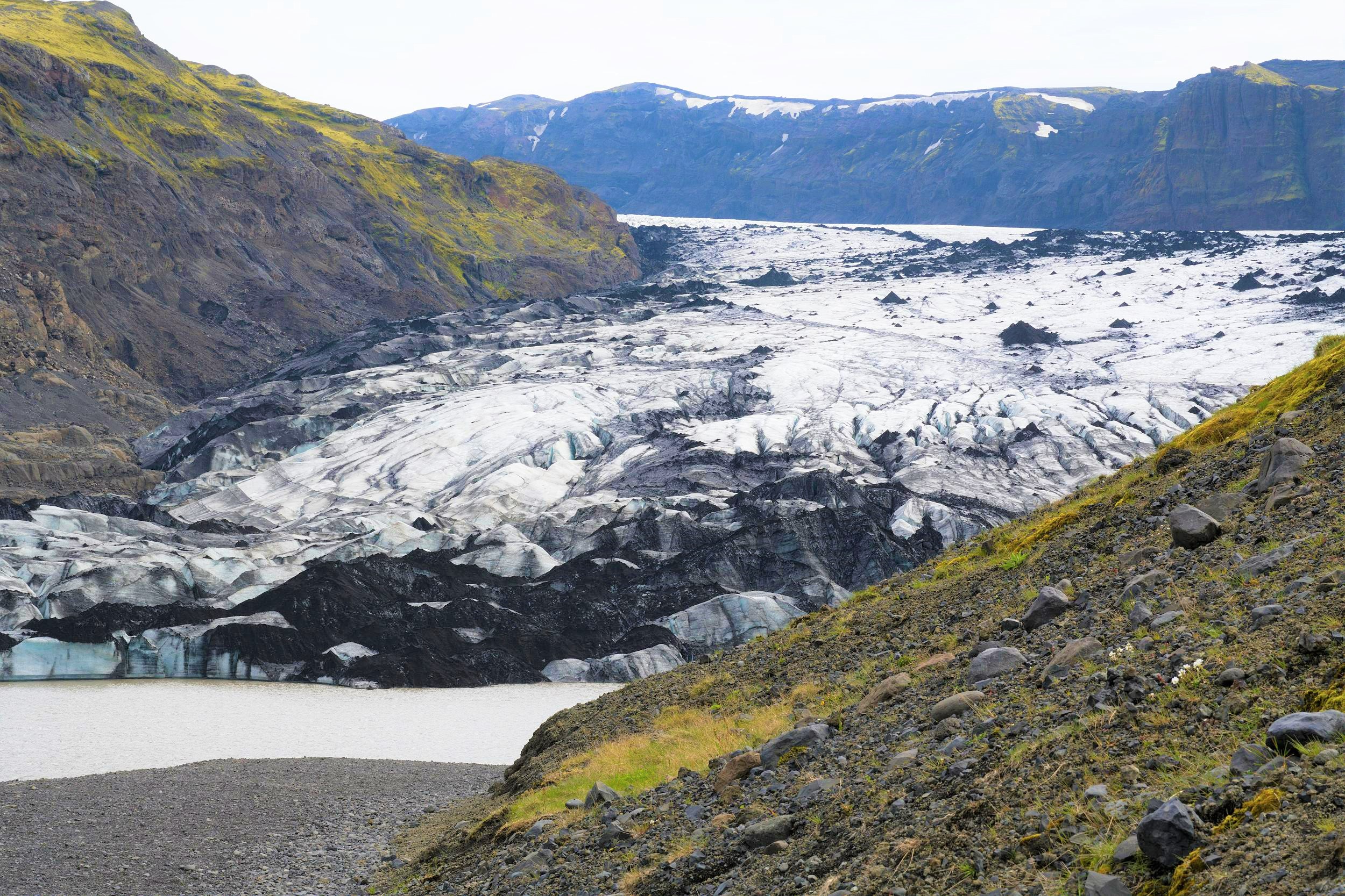 索爾黑馬冰川是從米達爾斯冰原流出的冰舌,米達爾斯冰原是冰島第四大冰川。不同於其他冰川,這裏並不是人們想象中那樣純白或帶着藍色的冰川。由於索爾黑馬冰川下面有一座活火山,噴發出來的火山灰覆蓋了整個冰川,所以這裏的冰是和火山灰相互融合的,呈現出一片白黑的顏色。