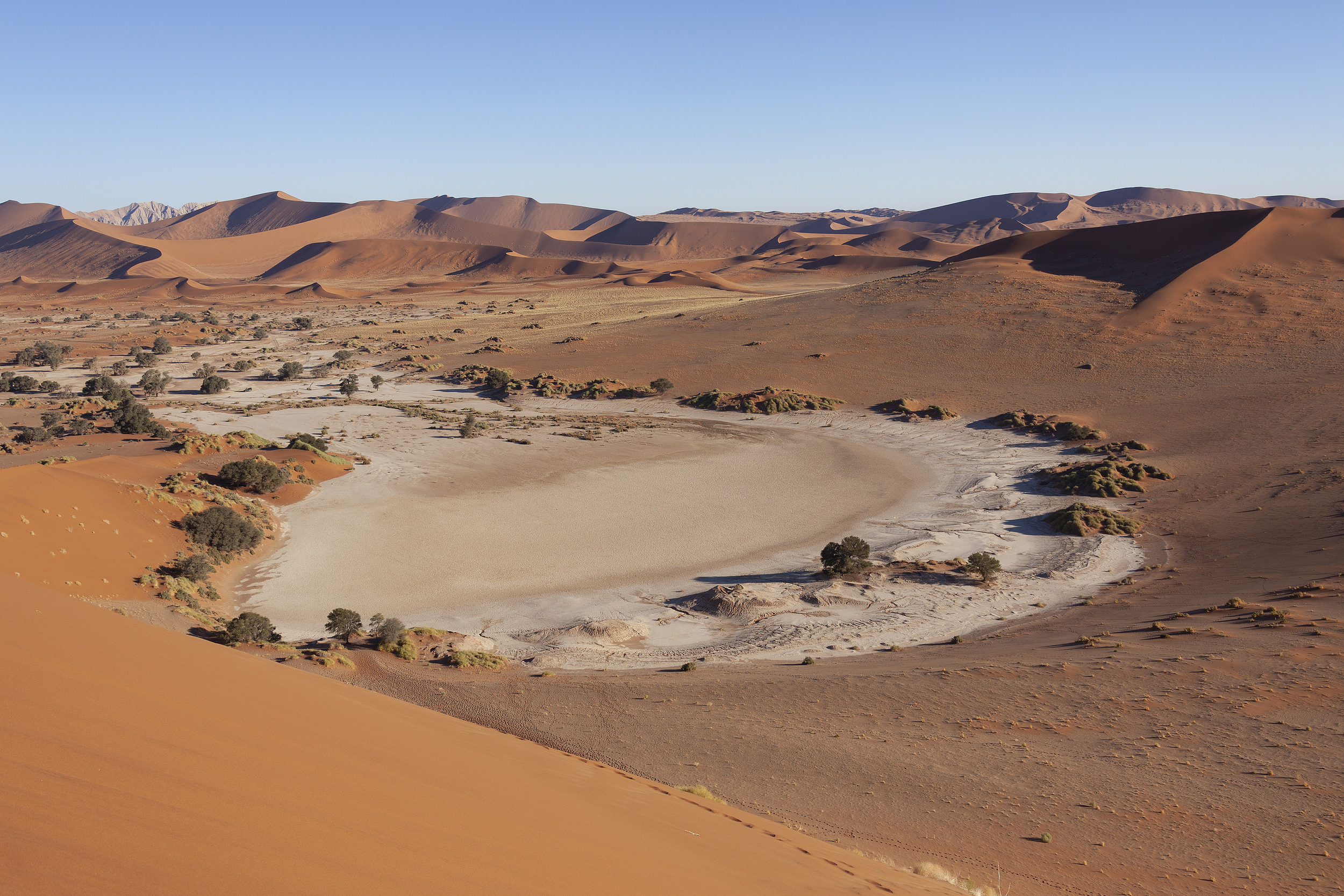 <p data-pm-slice="1 1 []">索蘇斯鹽沼位於納米布-諾克盧夫特國家公園內,是個以壯觀沙丘和鹽沼景觀聞名的旅遊勝地。這裡的紅色沙丘“45號沙丘”,是攝影愛好者的理想之地。清晨和傍晚的光線柔和,適合拍攝沙丘的色彩變化。 索蘇斯鹽沼的中心是一個白色的鹽盆地,周圍環繞著高聳的沙丘,形成了獨特的自然景觀。可以徒步攀登沙丘,體驗沙漠的遼闊與寧靜。附近的死亡谷以其枯死的駱駝刺樹和白色鹽地聞名,是另一個不容錯過的景點。 公園入口位於塞斯瑞姆,附近有加油站和小型商店,建議自備充足飲用水與高能量零食。園內等營地需提前數月預訂,若滿員可選擇塞斯瑞姆門外的住宿。沙丘攀登建議穿著封閉式鞋襪以防燙傷,無人機拍攝需事先申請許可。</p>