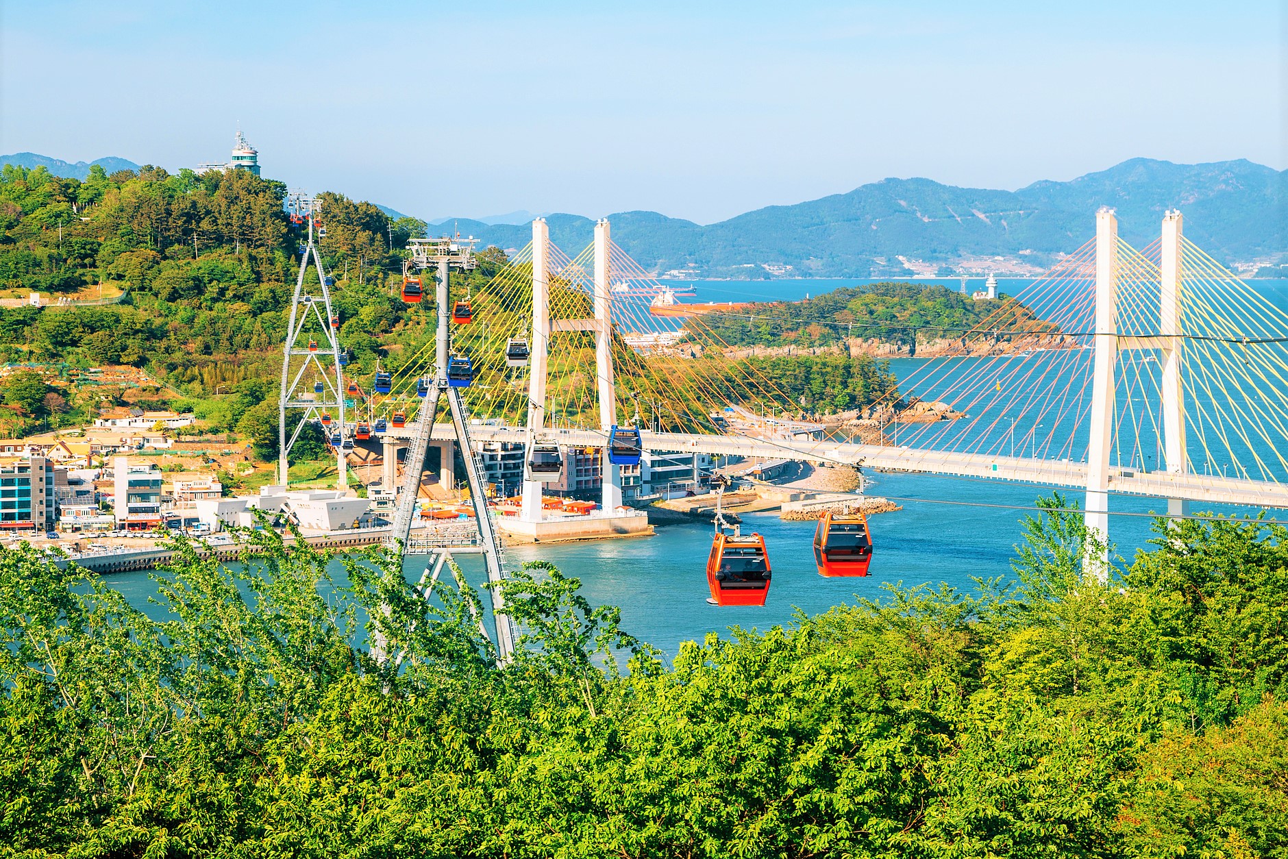 麗水海上纜車是韓國一座連接海島及陸地的纜車,自2014年開始運營。它可以將海洋全景一覽無遺,設有透明水晶車廂10輛(5人座)以及一般車輛(8人座)40輛,共有50輛車廂。透明水晶車廂地板亦為透明玻璃設計,讓遊客可盡情欣賞腳底的海洋風光。海上纜車的起訖點設有可以眺望麗水的多島海、突山大橋等景點的觀景台以及活動大廳。另外,夜晚時突山大橋的燈光與纜車的各色照明所形成的夜景,也讓麗水夜海更顯美麗動人。