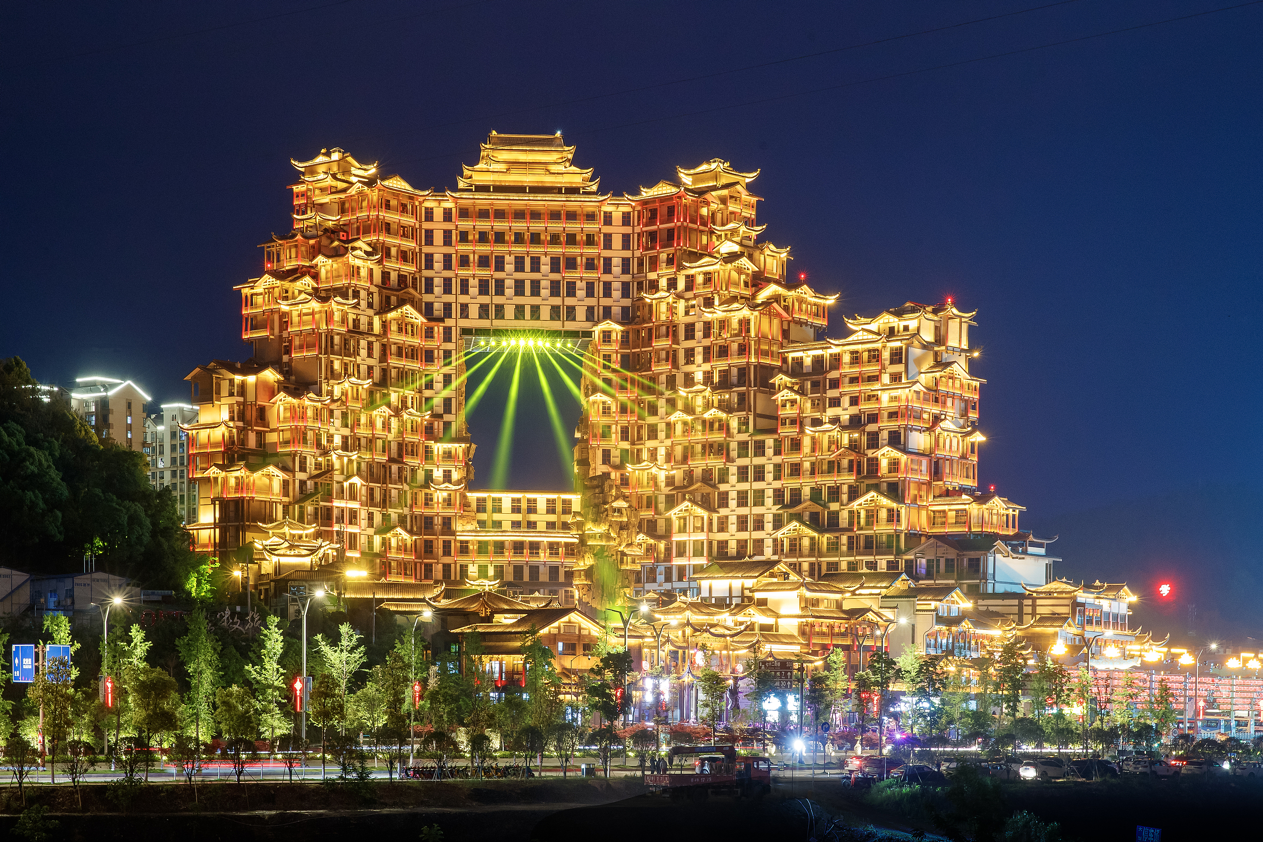 <p>天門山國家森林公園因自然奇觀「天門洞」而得名。遊覽景區時,你可以在纜車中俯瞰腳下盤旋在峭壁之間的通天大道和山中美景。膽大的還可以走一走貼壁懸空的玻璃棧道,體驗凌空行走的刺激。</p><p>天門山國家森林公園距離張家界城區較近,山中的天門洞是天然穿山溶洞,當地民眾認為從這裡可以直達天庭。對於普通遊客來說,天門洞並不是全年開放的,在每年的冬季,由於下雪道路結冰,天門洞以及通往天門洞的通天大道(99個彎的盤山公路)都會關閉。</p><p>景區大索道的下站位於永定區的官黎坪,上站是<span style="color: rgb(51, 51, 51); background-color: rgb(255, 255, 255); font-size: 14px;">天門山</span>頂。2020年景區開放了快線索道,快線索道下站位於天門山山門附近,上站位於<span style="color: rgb(51, 51, 51); background-color: rgb(255, 255, 255); font-size: 14px;">天門洞</span>停車場附近。</p><p>天門山國家森林公園內處處古樹參天,藤蔓纏繞。景區分為天門洞、中線、東線和西線景區等幾個主要區域。遊客可以根據自己喜好和體力選擇不同的線路和區域遊玩。</p><p>中線的核心景點是天門山寺,寺廟附近的「求兒洞」,民間傳說送子觀音在此顯聖,虔心許願可求兒女;西線的亮點是一段長約60米的「玻璃棧道」,建在懸崖峭壁上,腳下的道路全部用透明玻璃建成,走在上面,看到腳下的萬丈深谷,膽戰心驚之餘,感受凌空行走的快樂;目前東線及盤龍崖也分別開闢出了長約60米的玻璃棧道。</p><p>景區內不能住宿,所以只能在一日內遊玩完畢。在天門山寺附近有「櫻桃灣餐廳」,這裡提供小食和快餐。</p><p>在天門山索道下站附近,有交通車可以到「峽谷大劇場」,在這裡可以觀看實景演出、魔幻音樂劇《天門狐仙》。該故事改編自神話傳說《劉海砍樵》,講述了一段感天動地的人狐之戀。現場音樂、燈光烘托,以及超大月亮、狐精變幻、漫天飛雪、高空飛橋等一幕幕引人入勝的場景,將這段傳奇的愛情展現得淋漓盡致。</p><p><img src="https://dimg04.tripcdn.com/images/350w1b000001ai2mz22EE.jpg" style="width: 100%;"></p>