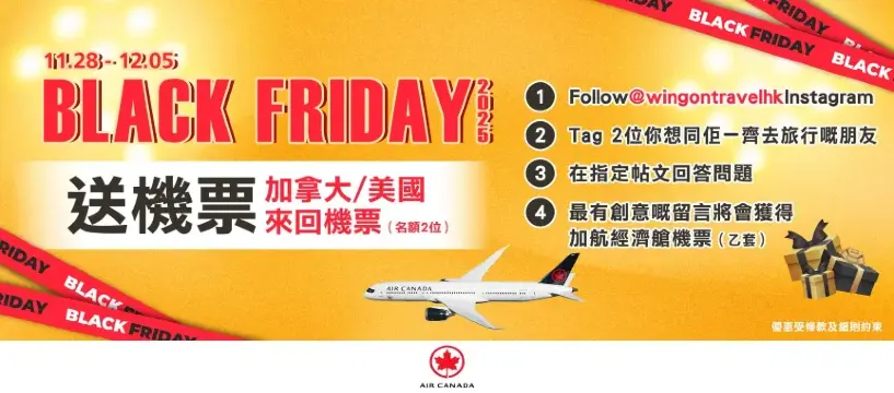 「2025 Black Friday 送加拿大航空機票」活動條款及細則 :