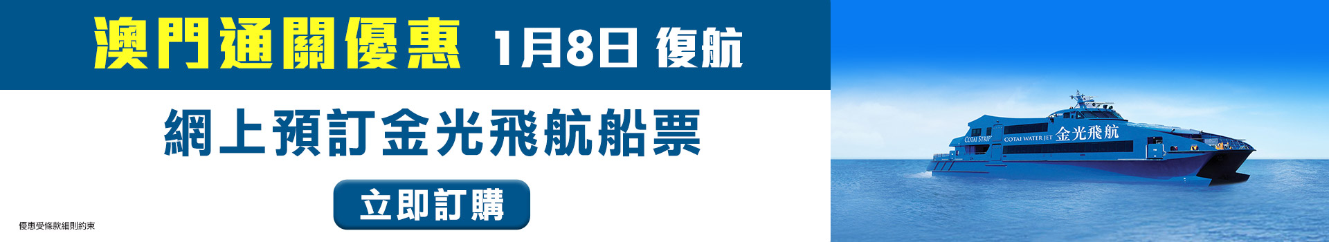 預訂金光飛航船票,每位減$10!