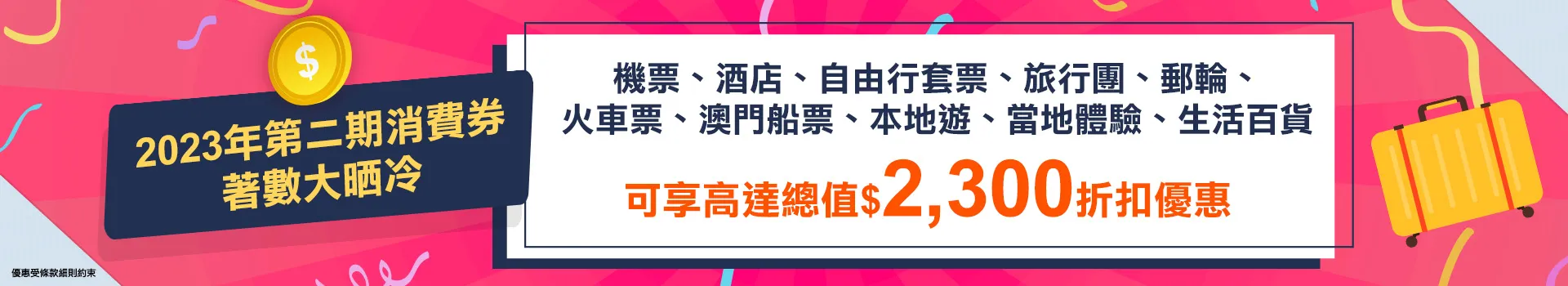 無論機票、酒店、自由行、旅行團、郵輪、火車票、澳門船票、本地遊、當地體驗定生活百貨,通通都有得減減減!