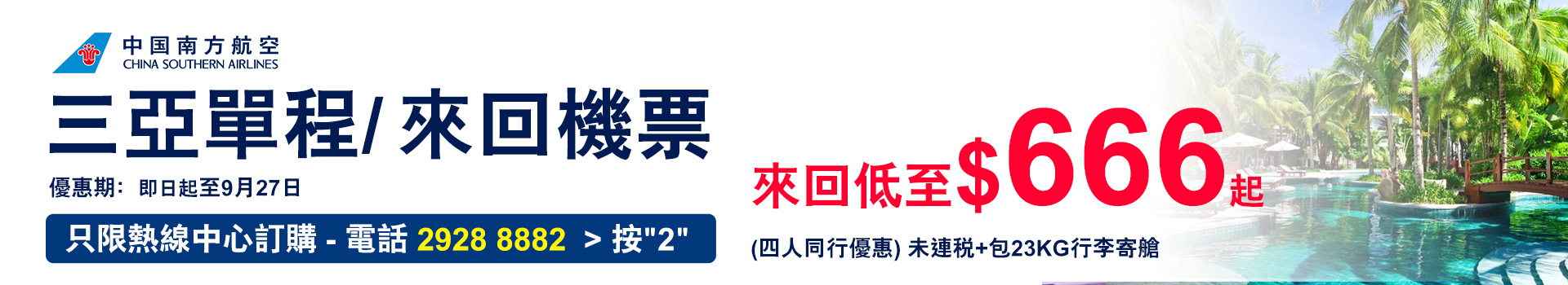中國南方航空✈️~三亞來回機票,低至$666起(4人同行,未連稅)