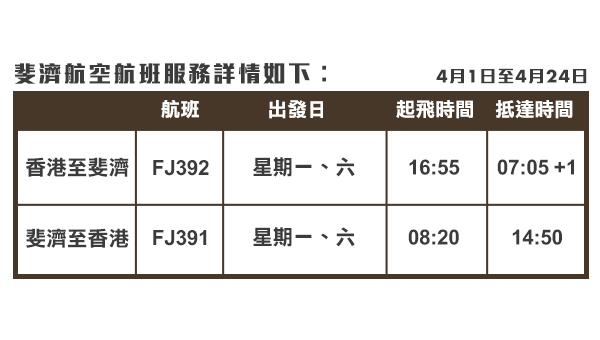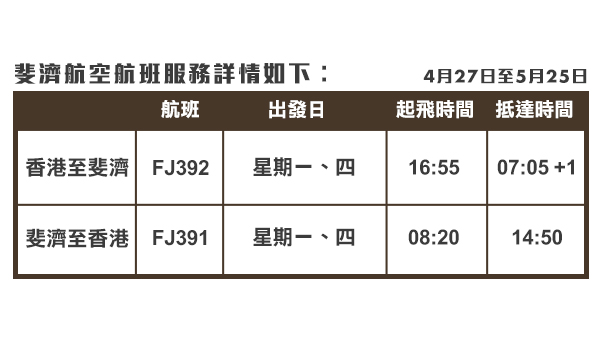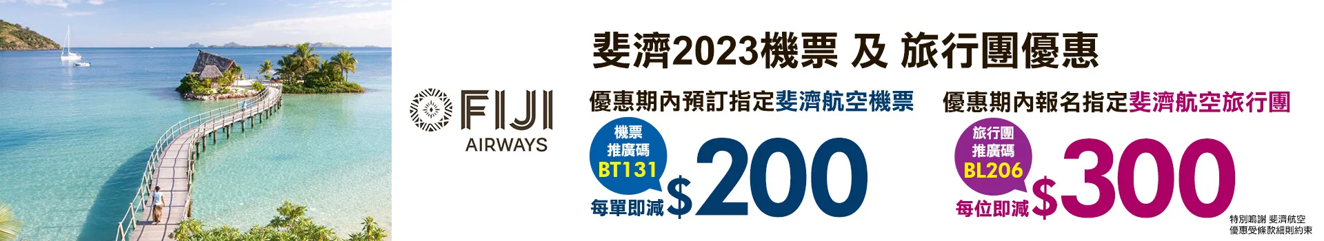 2023年2月13日至 2023年4月16日期間 於永安旅遊 網上預訂 斐濟航空✈️指定航線來回機票